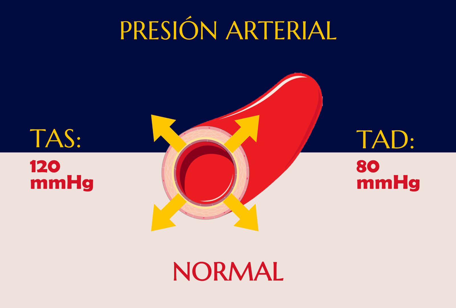 - En números: 120/80 mmHg no es arbitrario, es el número que ha demostrado ser el límite superior que no lesiona las arterias. por debajo de este valor, también es normal, a menos que presentes síntomas como síncope.